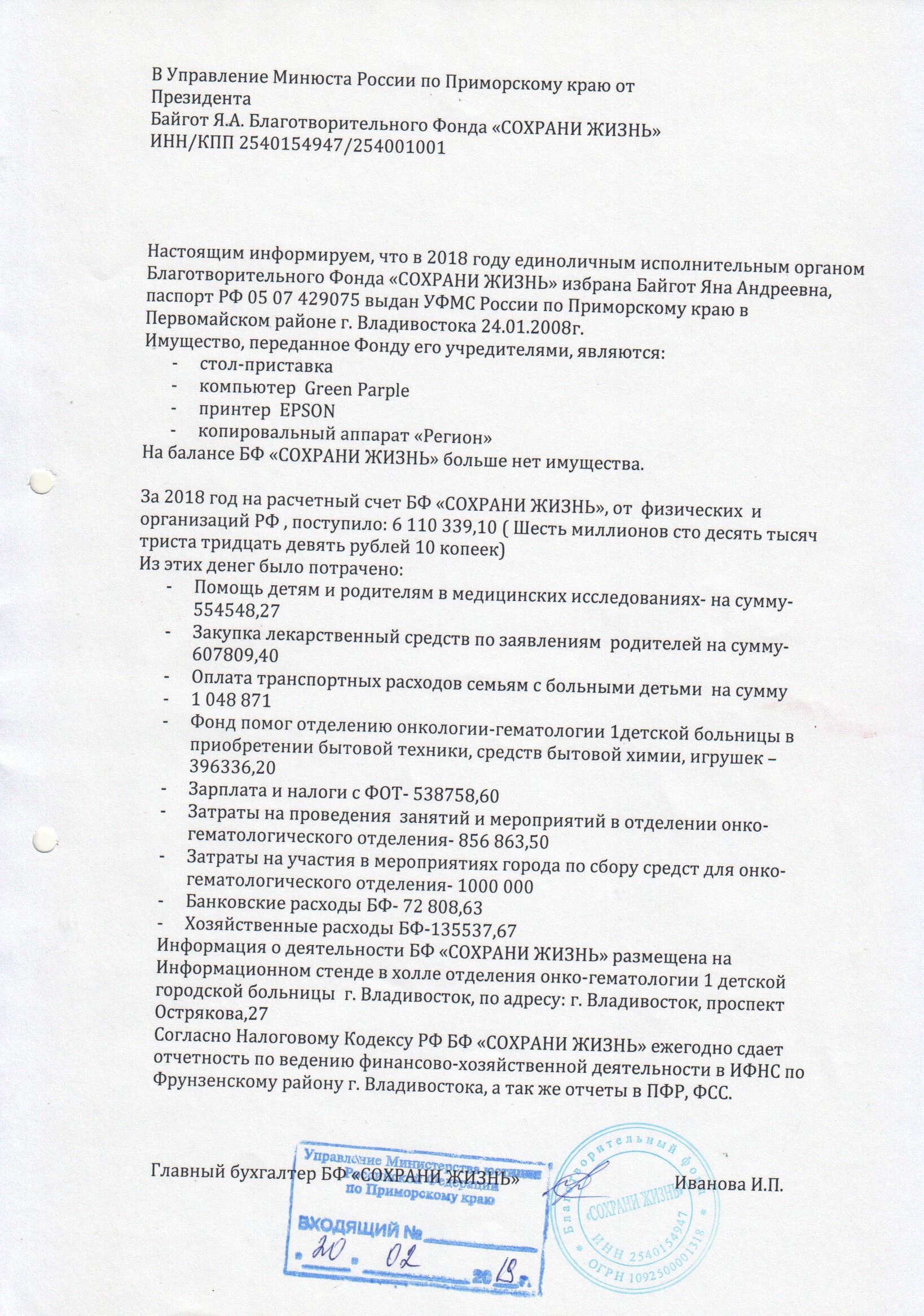 Финансовый отчёт за программы благотворительного фонда «Сохрани жизнь» за 2016 г.